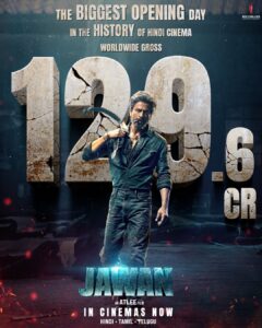 ஷாருக்கான் – ரசிகர்களின் மற்றும் பார்வையாளர்களின் இதயங்களை வென்று, பாக்ஸ் ஆபிஸில் சாதனை படைப்பார் என்பது ஜவான் படத்திற்கான முன்பதிவு மூலமே தெரிய வந்தது. இந்நிலையில் இந்த திரைப்படத்தின் முதல் நாள் வசூல் அனைத்து சாதனைகளையும் முறியடிக்கும் என முன்பே கணிக்கப்பட்டது. எதிர்பார்த்ததை போலவே ‘ஜவான்’ அனைவரின் கணிப்புக்கும் அப்பாற்பட்டு 129.6 கோடி ரூபாய் வசூலித்து உலகளாவிய பாக்ஸ் ஆபிஸில் அற்புதமான வெற்றியை பதிவு செய்துள்ளது. இதுவரை எந்த இந்திய படத்திற்கும் கிடைக்காத மிகப்பெரிய ஓப்பனிங் …இந்த ஜவான் படத்திற்கு கிடைத்திருக்கிறது. மேலும் இந்தி திரையுலக வரலாற்றில் மிகப்பெரிய தொடக்க நாள் வசூல் சாதனையும் ஜவான் பதிவு செய்துள்ளது.