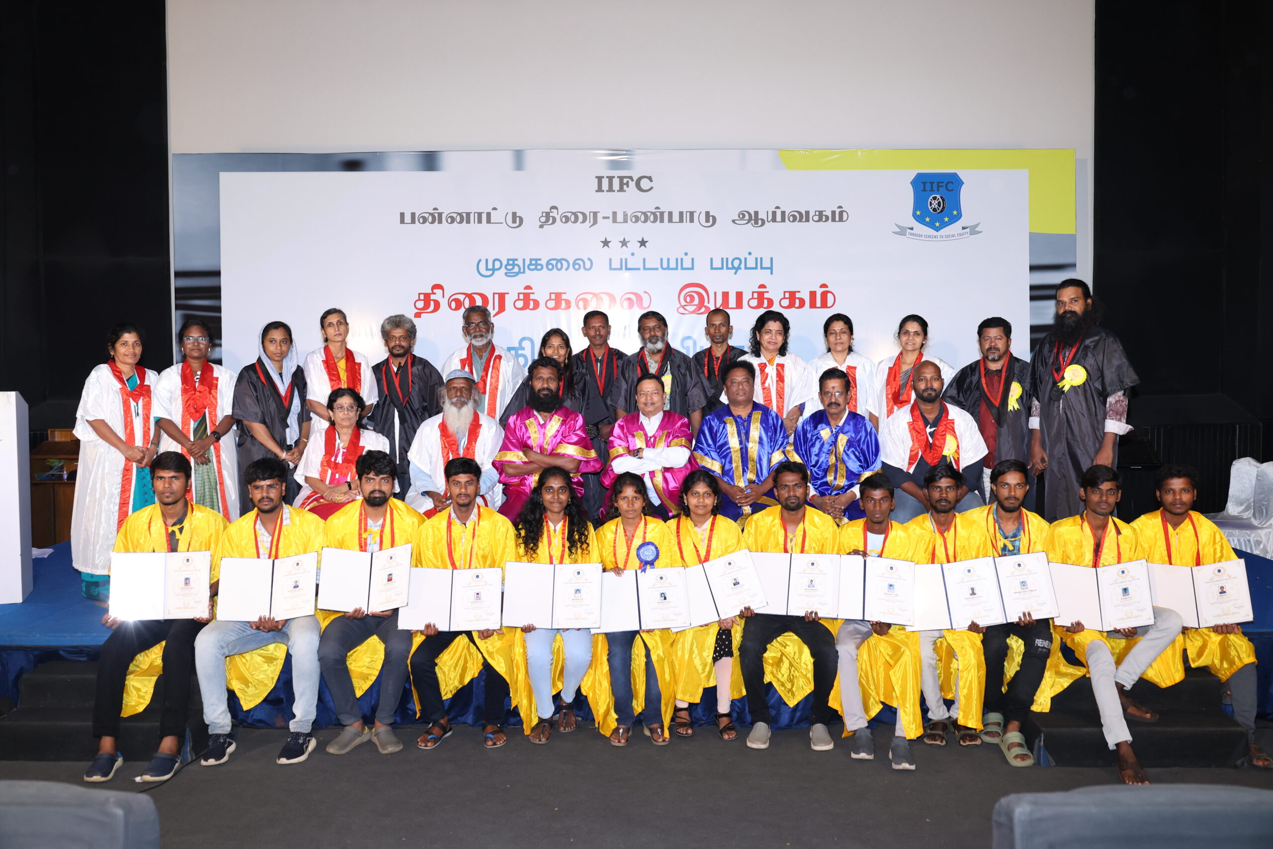 International Institute of Film and Culture Celebrates Its First Convocation "Be open to receive and act upon criticism and feedback. That is the only way to grow into excellence as a filmmaker". With these words of advice Director Vetri Maaran, Founder and President of the International Institute of Film and Culture (IIFC) conferred the Post Graduate Diploma in Film Direction to the first-ever batch of graduates of the Institute. The culmination of a germ of an idea five years ago has borne fruit this evening, he added. The International Institute of Film and Culture (IIFC) marked a significant milestone as it hosted its first convocation ceremony, an event brimming with talent and cinematic fervour. The ceremony was held under the esteemed patronage of Thiru. Ishari. K. Ganesh, Chancellor of Vels University, renowned Film Producers Thiru. Kalaipuli S. Thanu and Film Producer and Director Thiru. Elred Kumar. Embracing the spirit of cinematic excellence, the convocation showcased the artistic prowess of the graduating students through the screening of their remarkable films. From stirring narratives to visually captivating storytelling, the films exhibited a diverse range of themes and genres, resonating with the motto of the institution “Through Screen to Social Equity” Thiru. Ishari. K. Ganesh, Chancellor of Vels University, an eminent figure in the realm of education and film, presided over the convocation ceremony and in his address he encouraged the new graduates to pursue innovation and creativity in their journey as filmmakers. He further added that his Vel’s University will support all the future endeavours of IIFC. The presence of Thiru. Kalaipuli S. Thanu and Thiru. Elred Kumar further elevated the ceremony. Their invaluable experience and guidance offered the graduates a glimpse into the industry's intricacies, setting the stage for a promising future. The convocation served as a testament to the dedication and hard work of both the students and the institute, fostering an environment where cinematic dreams transform into reality. It marked not just the culmination of an educational journey but also the commencement of a new chapter filled with boundless possibilities in the realm of films. Students took oath in front of the dignitaries and audience that they would be catalysts for change to achieve social equity and be responsible filmmakers. As the curtains drew on this convocation, it left behind an aura of aspiration, echoing the potential and promise of the budding filmmakers who are poised to make indelible marks in the world of cinema.