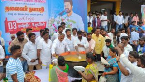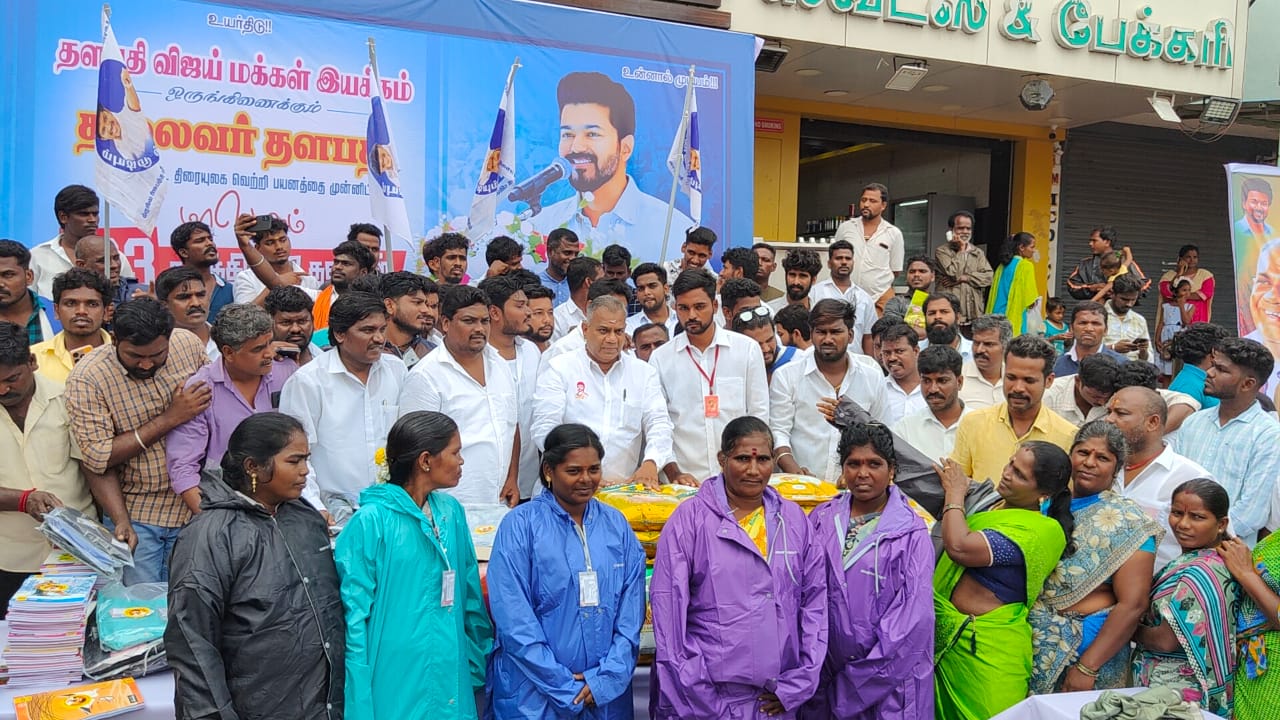 தளபதி அவர்களின் 31-வது ஆண்டு திரையுலக கலைபயணத்தை முன்னிட்டு.! விழுப்புரம் மாவட்ட வானூர் ஒன்றிய தலைமை தளபதி விஜய் மக்கள் இயக்கம் சார்பாக திரு.நிரஞ்சன் அவர்களின் ஏற்பாட்டில், திருச்சிற்றம்பலம் கூட்ரோடு பகுதியில் தூய்மை பணியாளர்கள் 30 நபர்களுக்கு ரெயின் கோட், புடவை மற்றும் 5கிலோ அரிசி பைகளும், பெண்கள் 350 நபர்களுக்கு புடவை மற்றும் 5 கிலோ அரிசி பைகளும், மாணவ, மாணவிகளுக்கு நோட்டு புத்தகம், பேனா போன்ற உபகரணங்கள், பொதுமக்கள் 400 நபர்களுக்கு மதிய உணவு ஆகியவற்றை அகில இந்திய பொதுச்செயலாளர் திரு.புஸ்ஸி N. ஆனந்து அவர்கள் வழங்கினார்.! இந்நிகழ்ச்சியில் விழுப்புரம் மாவட்ட தலைவர் குஷி.N.மோகன் முன்னிலை வகித்தார்.! மேலும் விழுப்புரம் தெற்கு மாவட்ட தொண்டரணி தலைவர் திரு.S.சக்திவேல்,கள்ளக்குறிச்சி கிழக்கு மாவட்ட இளைஞரணி தலைவர் திரு.K.மோகன், விழுப்புரம் மாவட்ட துணை தலைவர் திரு.வடிவேல், வானூர் ஒன்றிய தலைவர் திரு.P.முருகையன், கோட்டக்குப்பம் நகர மன்ற உறுப்பினர் திருமதி.கவுஸ் மற்றும் விழுப்புரம் & கள்ளக்குறிச்சி ஒன்றியம், நகர, பகுதி, கிளை மக்கள் இயக்க நிர்வாகிகள் திரளாக கலந்து கொண்டு விழாவினை சிறப்பித்தனர்.!
