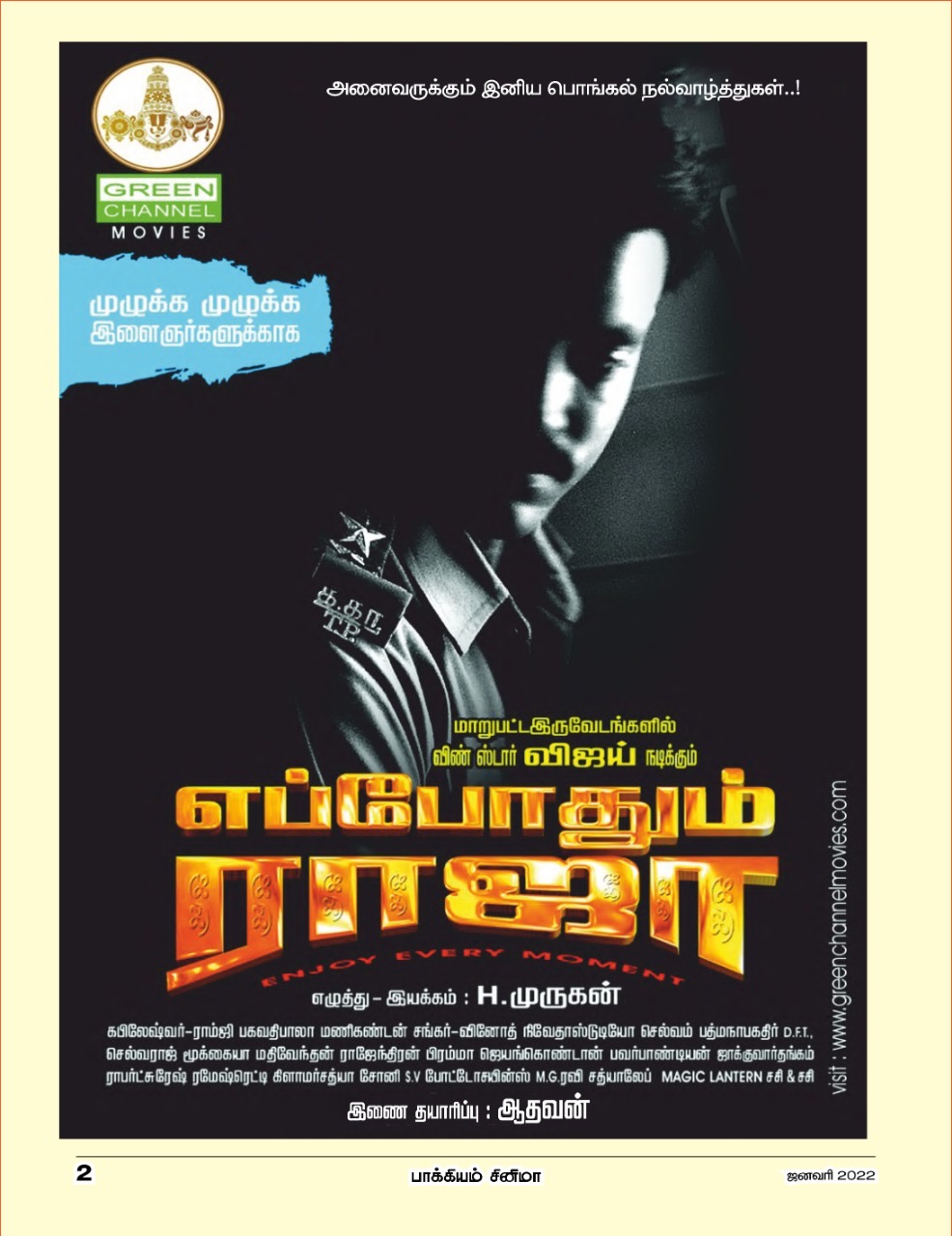 உலகில் முதல் முறையாக வாலிபால் விளையாட்டை வைத்து வரும் படம் எப்போதும் ராஜா. ( பாகம் 1 ) அண்ணன் தம்பியாக விண்ஸ்டார் விஜய் முதல் படத்திலேயே எதார்த்தமான நடிப்பை வெளிப்படுத்தி இருக்கிறார். ஆறு பாடல் காட்சிகள், ஆறு சண்டை காட்சிகள் சிரிப்பு செண்டிமெண்ட் பாசம் என மக்களுக்கு பிடித்துள்ள ஜனரஞ்சகமான படமாக அமைந்துள்ளது. விண்ஸ்டார் விஜய்யுடன் ஜோ மல்லூரி, பி.சோம சுந்தரம், லயன்குமார், பிரியா,டெப்ளினா, கும்தாஜ் மற்றும் பலர் நடித்துள்ளனர். இப்படம் தமிழ்நாடு, கேரளா, ஆந்திரா, கர்நாடகா, கோவா மற்றும் பாண்டிச்சேரியில் படமாக்கப்பட்டுள்ளது. எப்போதும் ராஜா பாகம் 1 படத்தின் தயாரிப்பாளர், இயக்குனர் மற்றும் நடிகர் விண்ஸ்டார் விஜய் தெரிவித்தாவது... இந்த படம் தணிக்கை குழு 27 கட் கொடுத்துள்ளது. உலகிலேயே முதன்முறையாக கைப்பந்து விளையாட்டை கதைக்களமாக கொண்டு தயாரிக்கப்பட்டிக்கிறது. இந்த படத்தில் சாதாரண மனிதன் சாதனை படைக்க போராடுவது தான். படத்தின் திரைக்கதை ஆரம்பத்தில் தமிழ்நாடு வாலிபால் சாம்பியன் ஆக அறிமுகம் ஆகி இந்திய அளவிலான போட்டியில் கலந்துகொண்டு வெற்றி பெற முயற்சி செய்கிறேன். இதில் பல பிரச்சனைகளை சந்தித்து எப்படி வெற்றி பெற்றான் என்பதே படத்தின் கதை என்கிறார். இந்த படம் உலகமெங்கும் பிப்ரவரி 16 அன்று திரையரங்குகளில் திரையிடப்பட உள்ளது. தயாரிப்பாளர், இயக்குனர், நடிகர் (9940259469) PRO - Ramajeyam